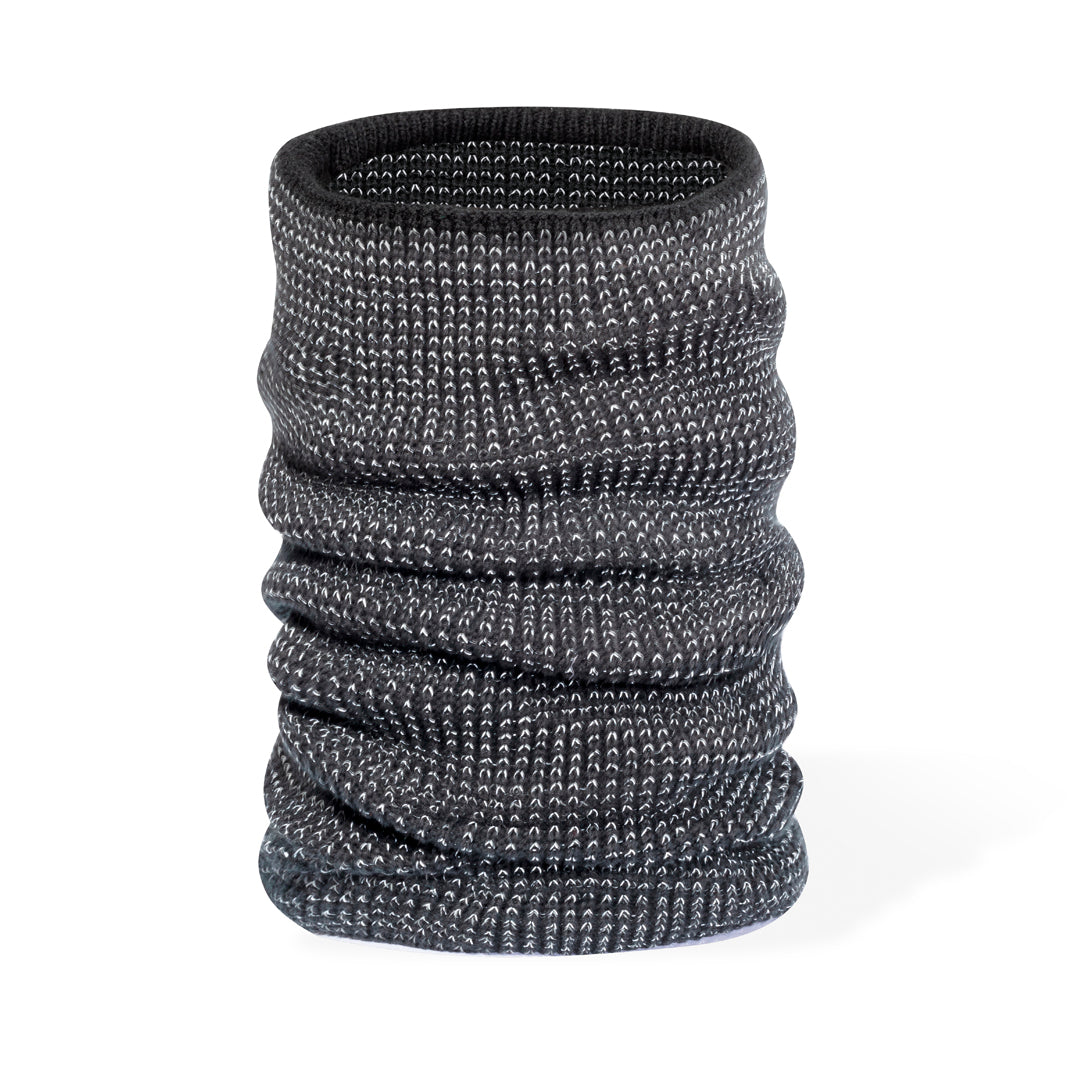 Quente aquecedor de pescoço refletor em malha canelada, fabricado em suave material acrílico elástico em combinação com poliéster, e interior em macio polar fleece. Inclui um fio refletor entrançado no tecido para aumentar a visibilidade.