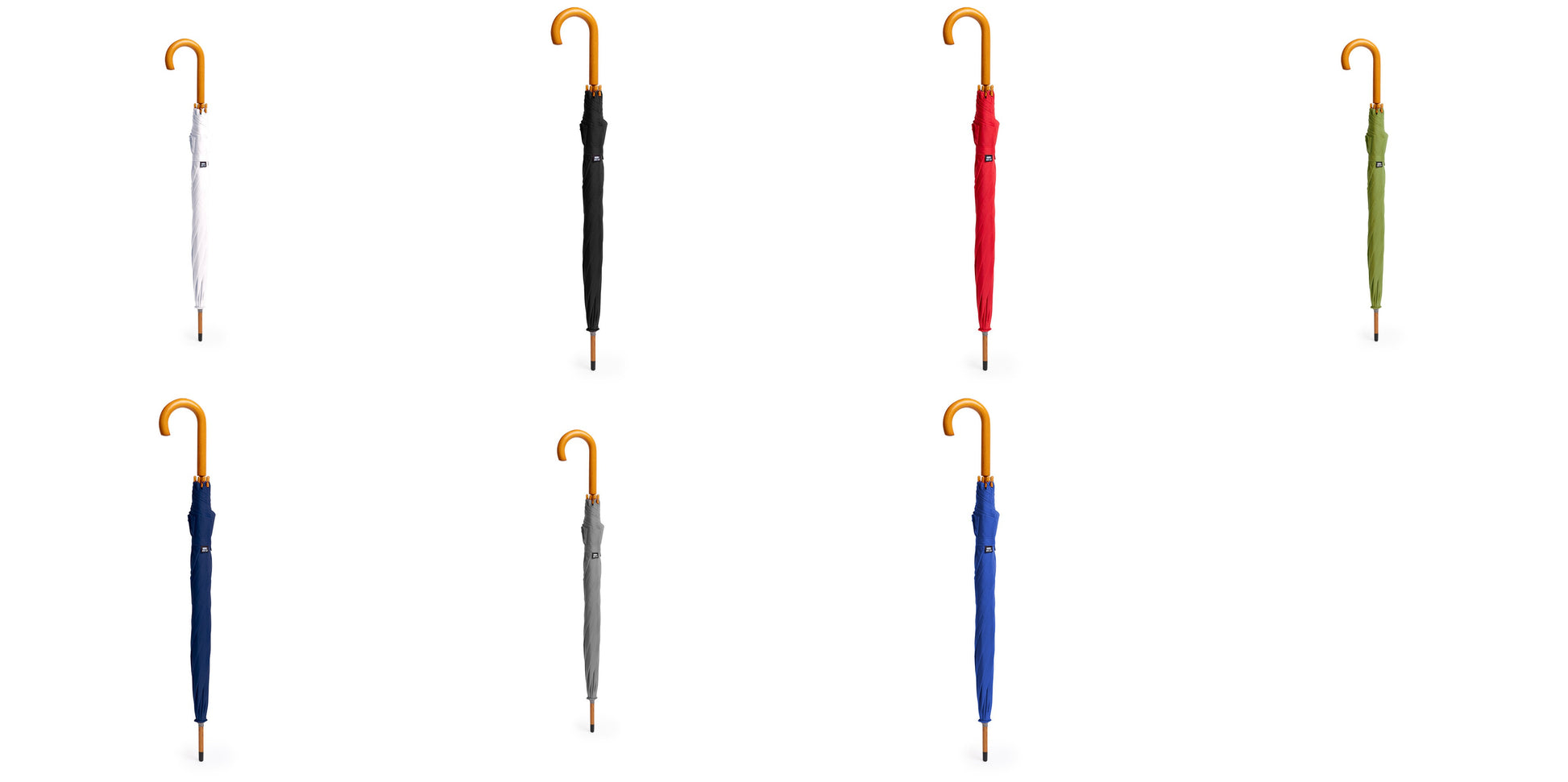 Guarda -chuva da linha da natureza de 105 cm de diâmetro. Em 190T, o material de pongee, obtido de materiais plásticos reciclados, para incentivar a reutilização de resíduos plásticos e contribuir para a sustentabilidade da Terra. Abertura automática, com costelas de metal. Maça de madeira e poste, com rótulo distintivo.