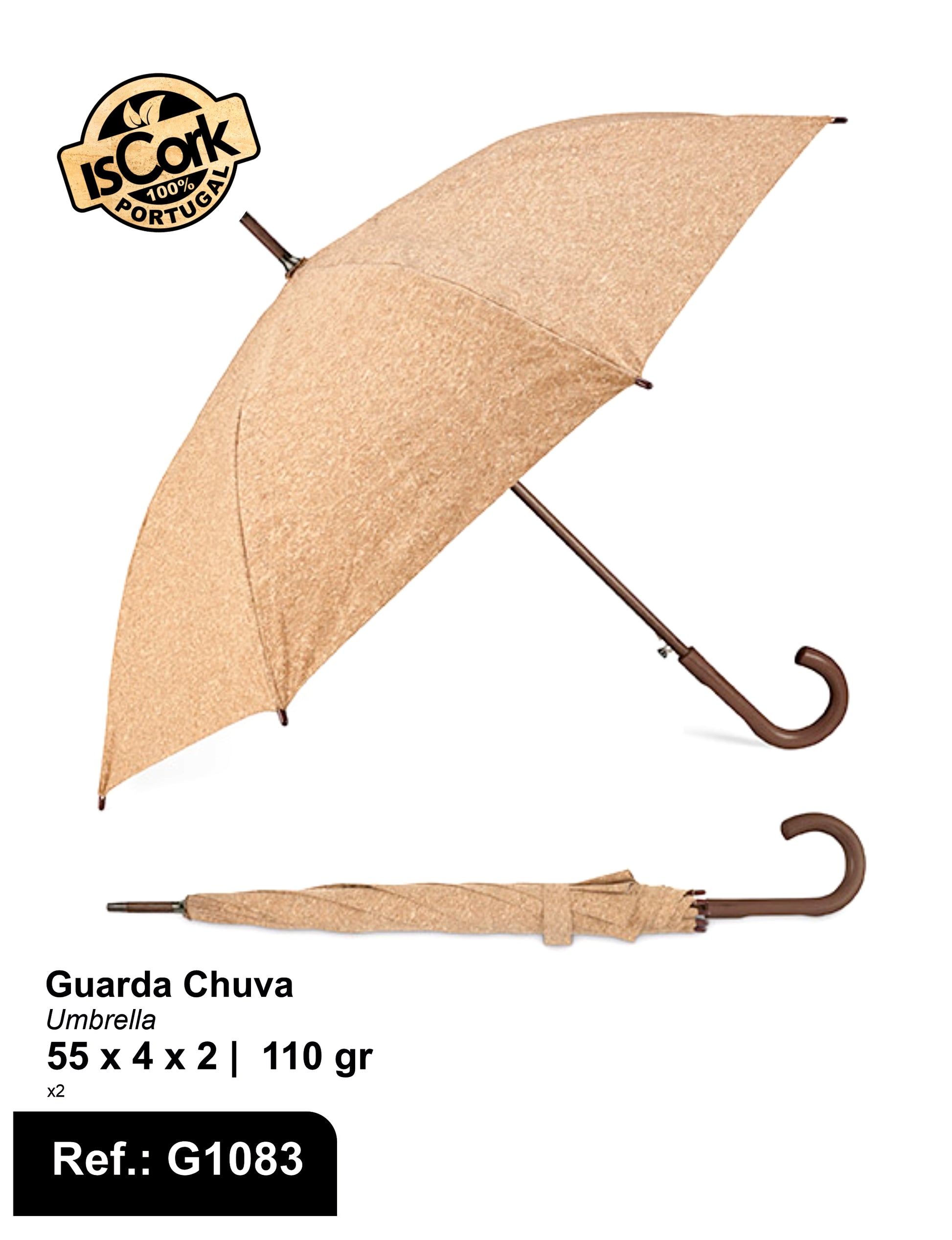 Apresentamos o nosso guarda-chuva em cortiça, um acessório elegante e sustentável para protegê-lo da chuva. Feito com cortiça de alta qualidade, este guarda-chuva é resistente, durável e à prova d'água, proporcionando uma proteção eficaz contra os dias chuvosos.