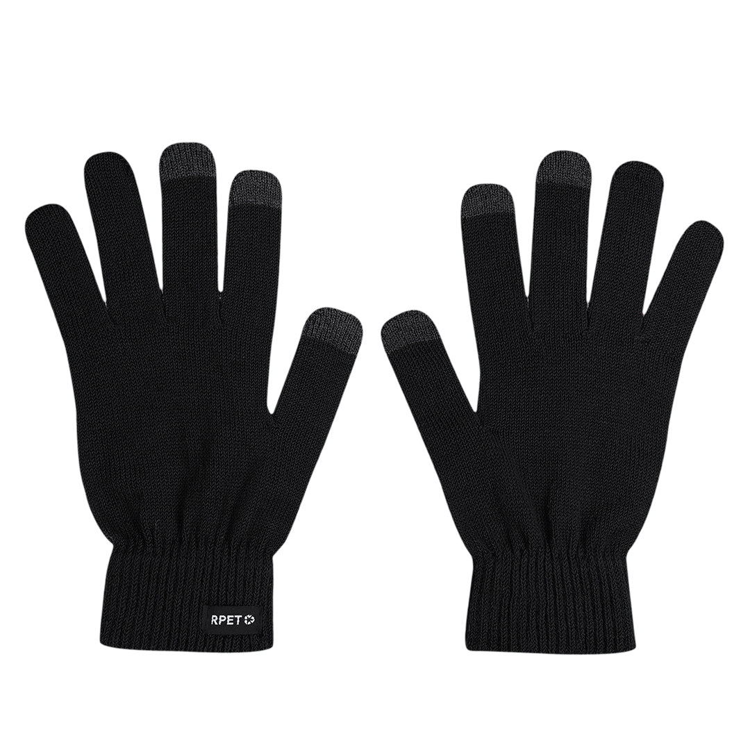 Luvas feitas de tecido de poliéster RPET quente e macio, para dispositivos touchscreen. Com funcionalidade de touchscreen nos dedos médio, indicador e polegar em cor correspondente. Com etiqueta RPET.