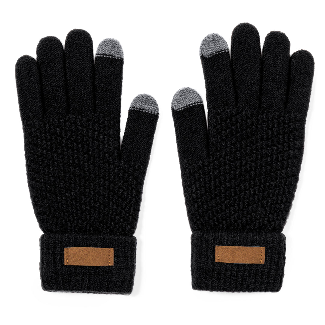 Prático par de luvas para dispositivos com ecrã tátil. De quente e macio acabamento de poliéster RPET. Função tátil no dedo indicador e no polegar. Tamanho único para adulto, com logotipo RPET na etiqueta exterior.