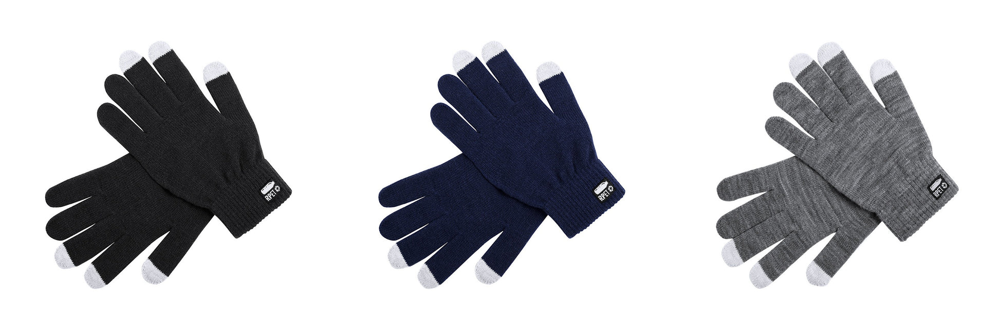 Prático par luvas de linha nature para dispositivos con ecrã tátil. De quente e suave acabamento em poliéster RPET, elaborado a partir de plástico reciclado para assim incentivar a reutilização de resíduos plásticos e contribuir para a sustentabilidade do planeta. Função tátil nos dedos médio, indicador e polegar. Tamanho único de adulto, com distintivo RPET na etiqueta exterior.