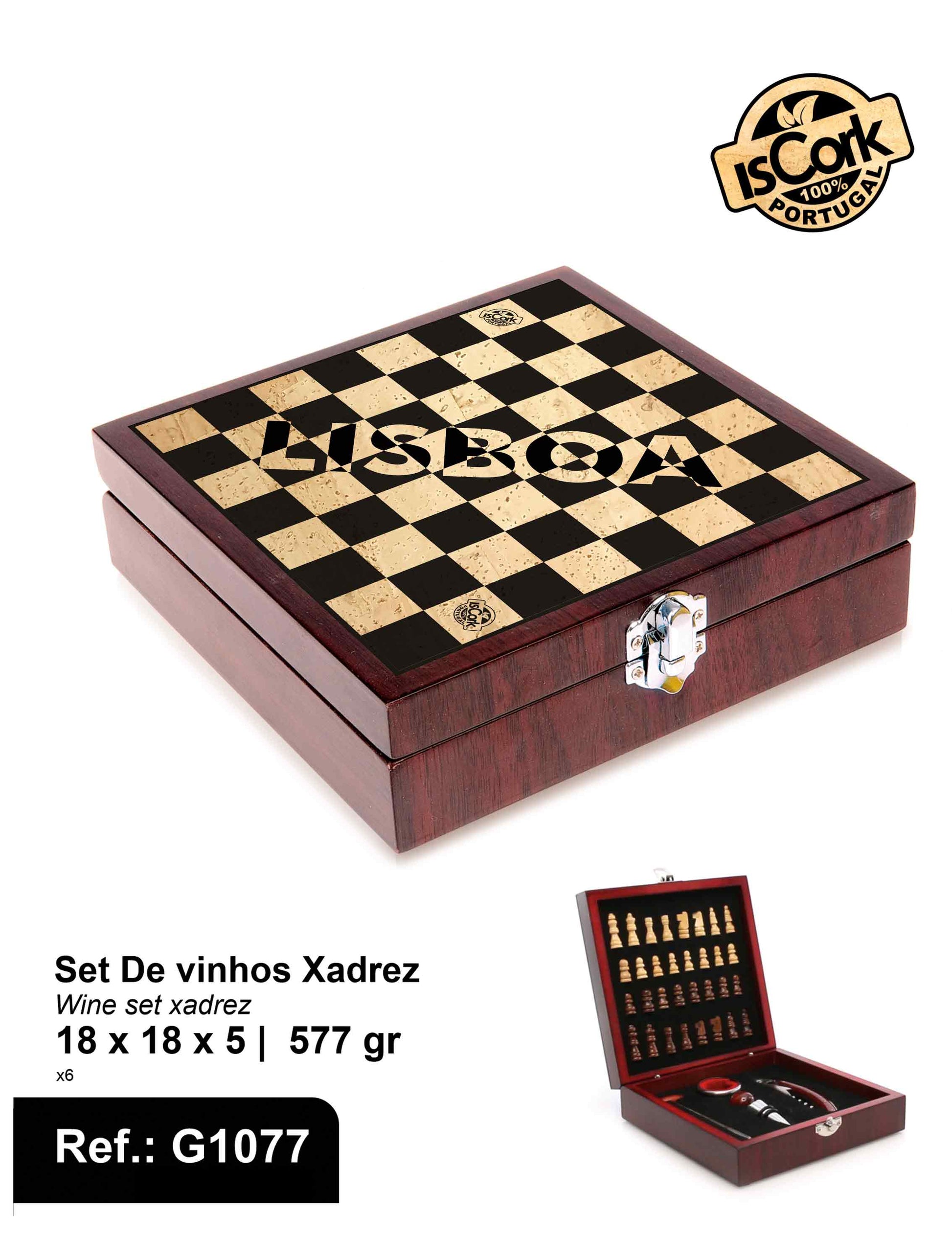 O Set de vinhos xadrez é um conjunto elegante e funcional para os amantes de vinhos e jogos de tabuleiro. Este conjunto inclui um tabuleiro de xadrez impresso em uma caixa de madeira de alta qualidade, que contém todos os acessórios necessários para abrir, servir e desfrutar de uma garrafa de vinho com estilo.