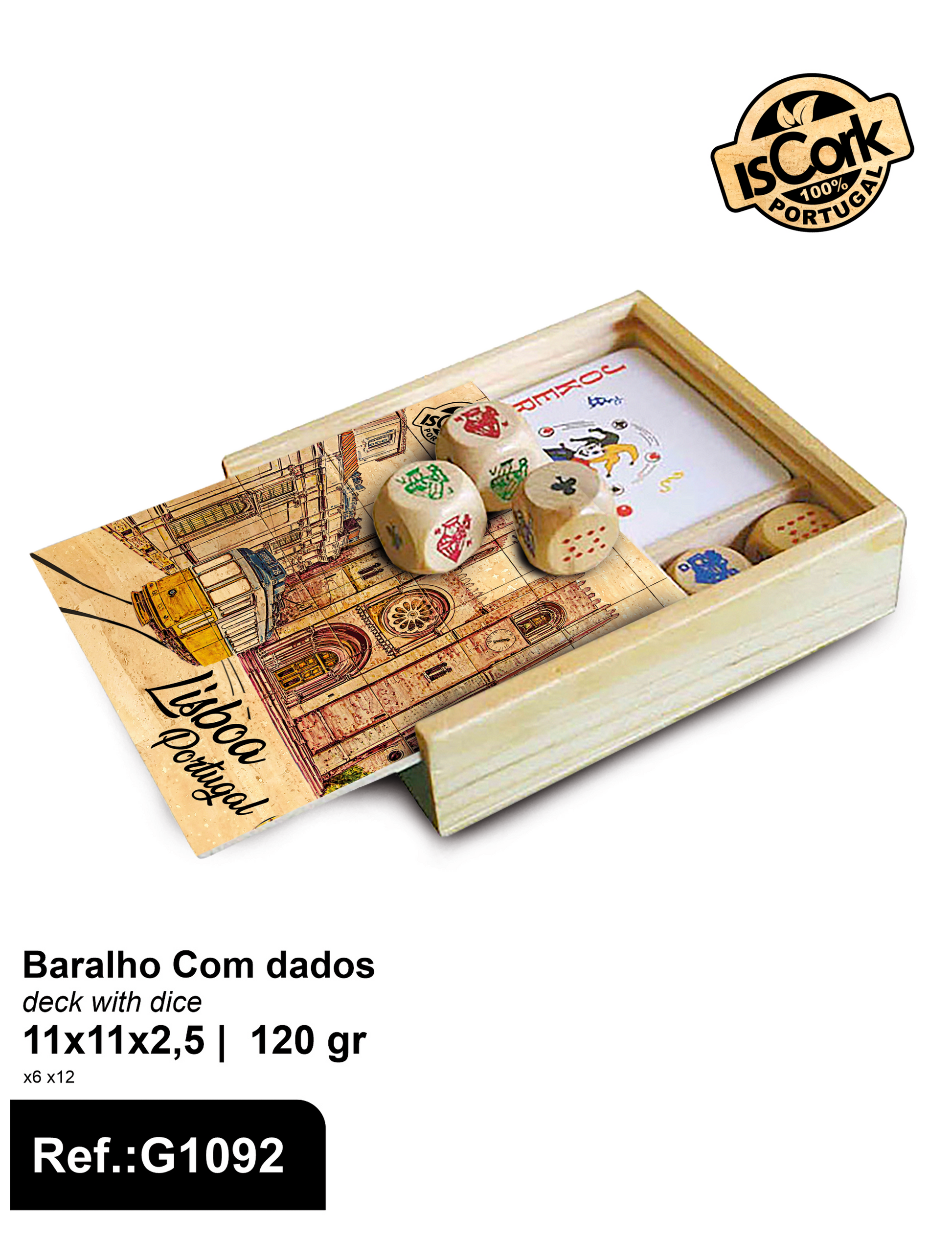 O Baralho com Dados vem em uma caixa resistente e elegante, perfeita para guardar suas cartas e dados quando não estiver jogando. Além disso, a caixa inclui uma folha com instruções básicas de jogos para ajudá-lo a começar a jogar rapidamente.