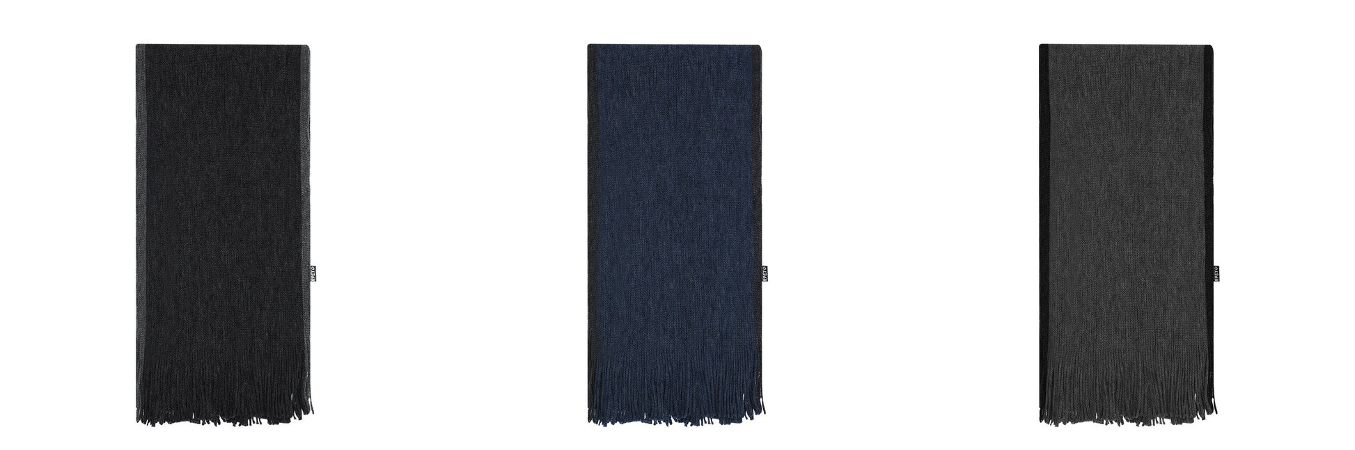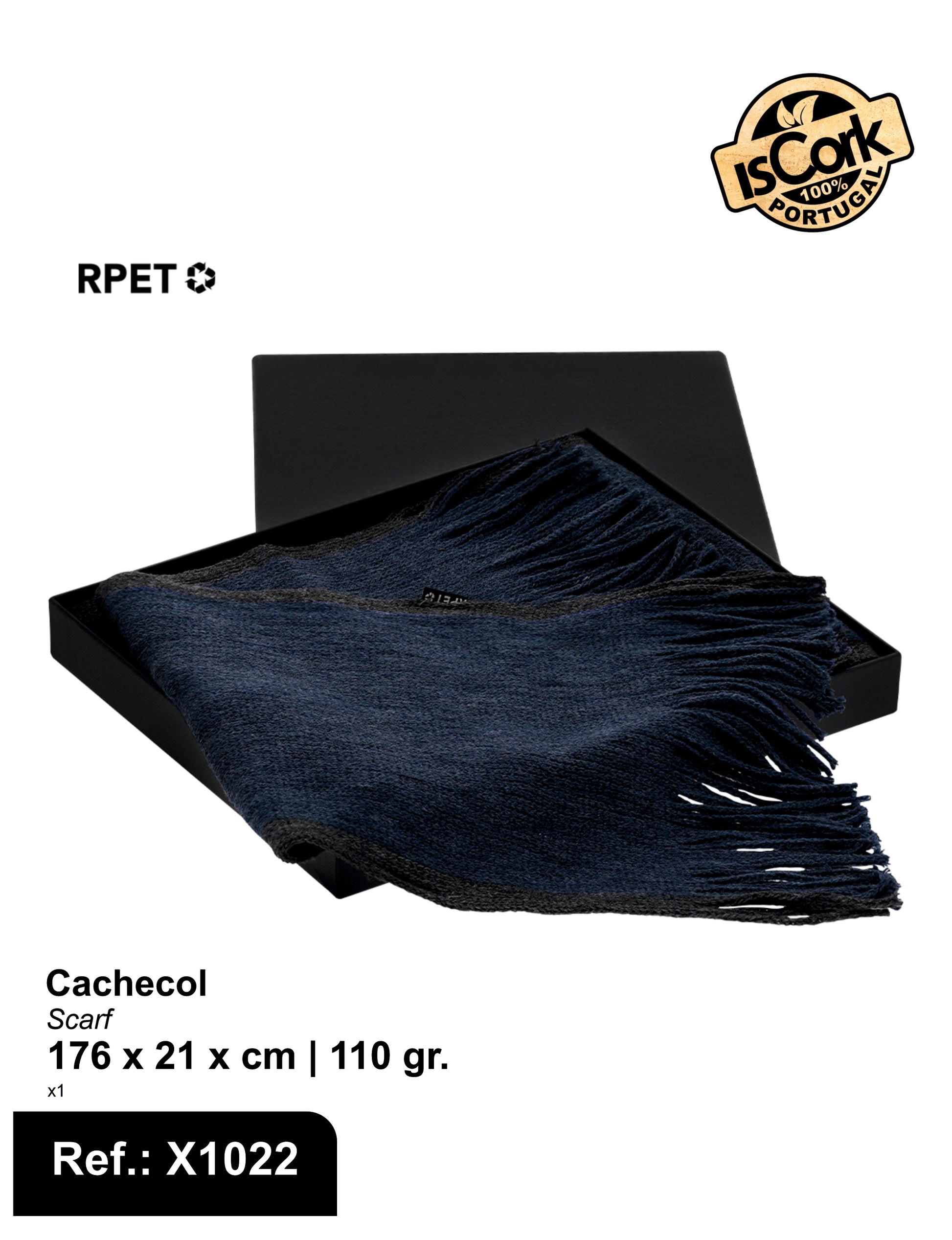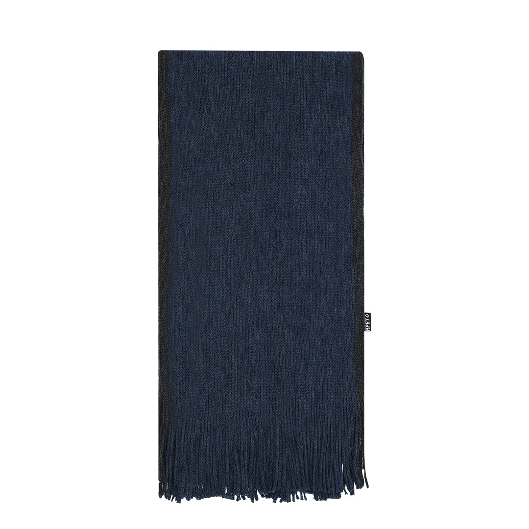 Macio e quente cachecol confecionado em poliéster RPET . Fabricado em elegantes cores bicolores com rebordos de cores diferentes e acabamento em franjas. Com o logotipo RPET na etiqueta. Apresentada individualmente numa caixa preta.