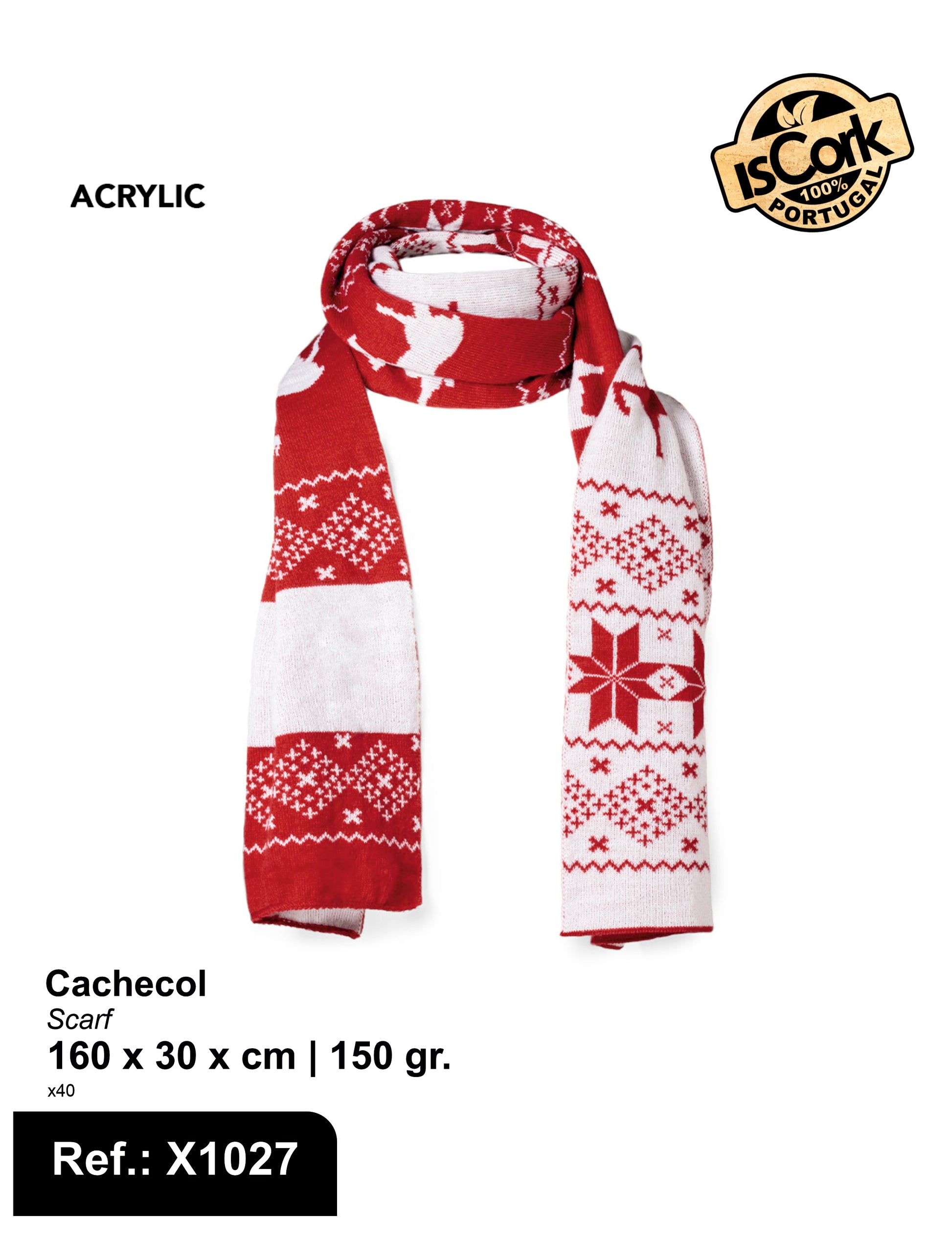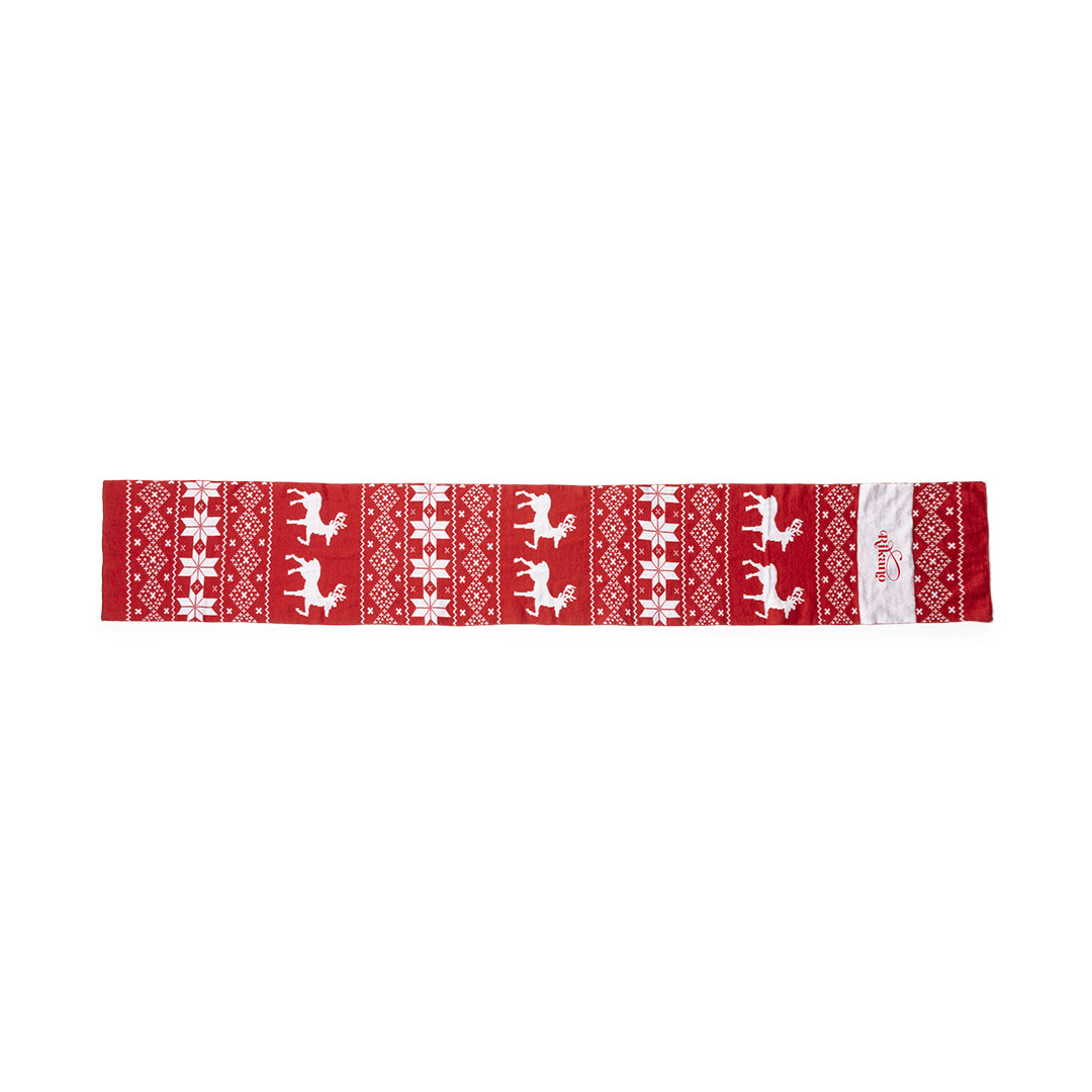 Cachecol divertido e quente com motivos natalícios. Um brinde original para usar com estilo no Natal. Fabricado em suave poliéster acrílico e apresentado numa bolsa individual reciclada. Possui uma zona especial para impressão.