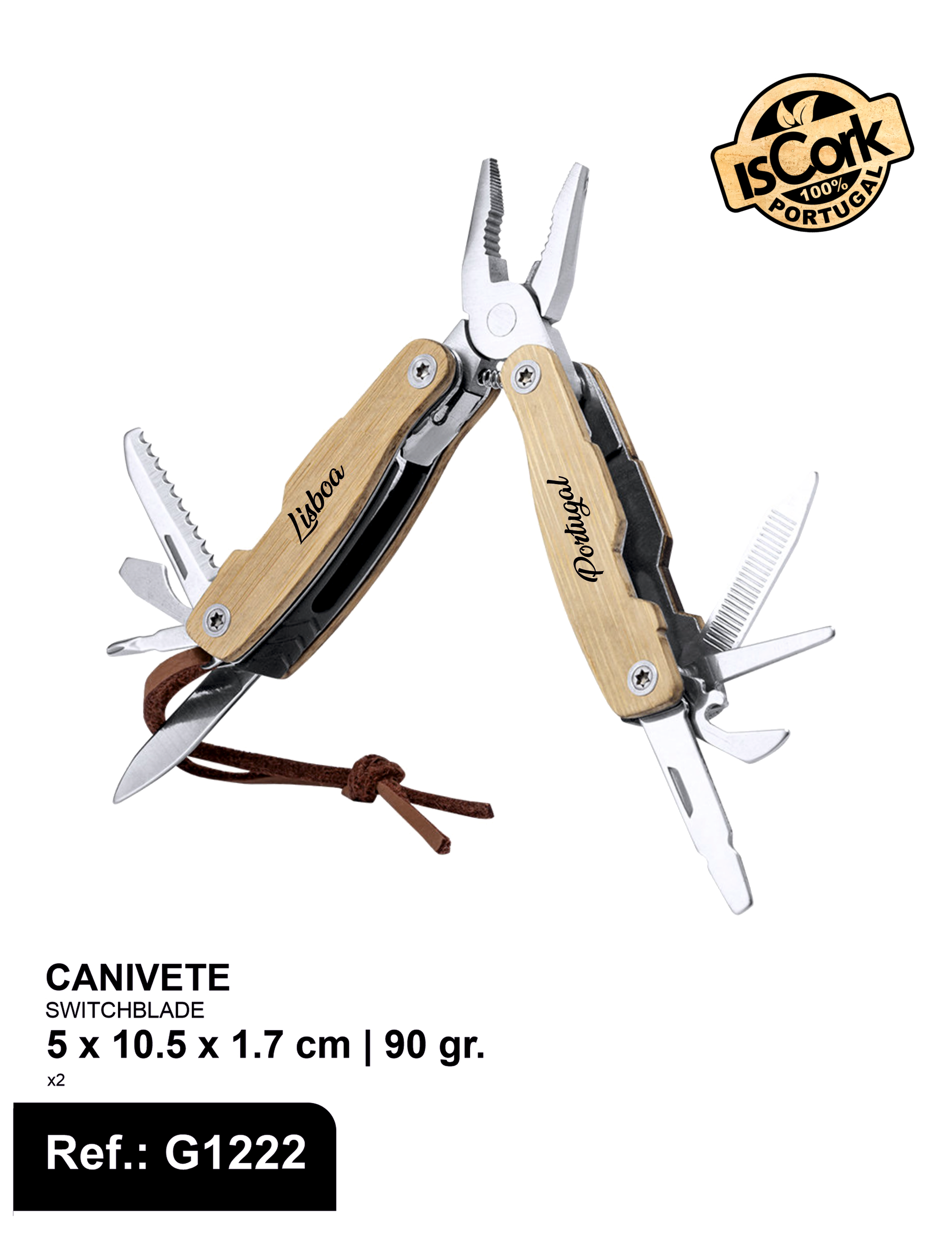 Apresentamos a Multiferramenta com corpo resistente em aço inox e cabo em bambu, com 12 funções. Inclui facas e navalhas; chaves de fenda, limas; abridores e alicates. Com alça de transporte em couro sintético.
