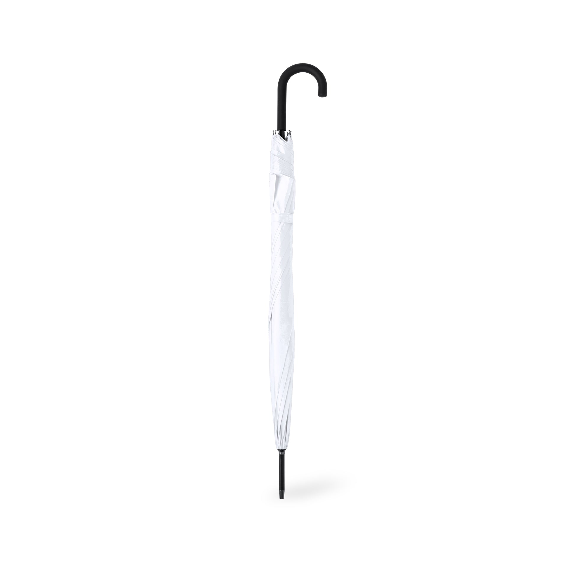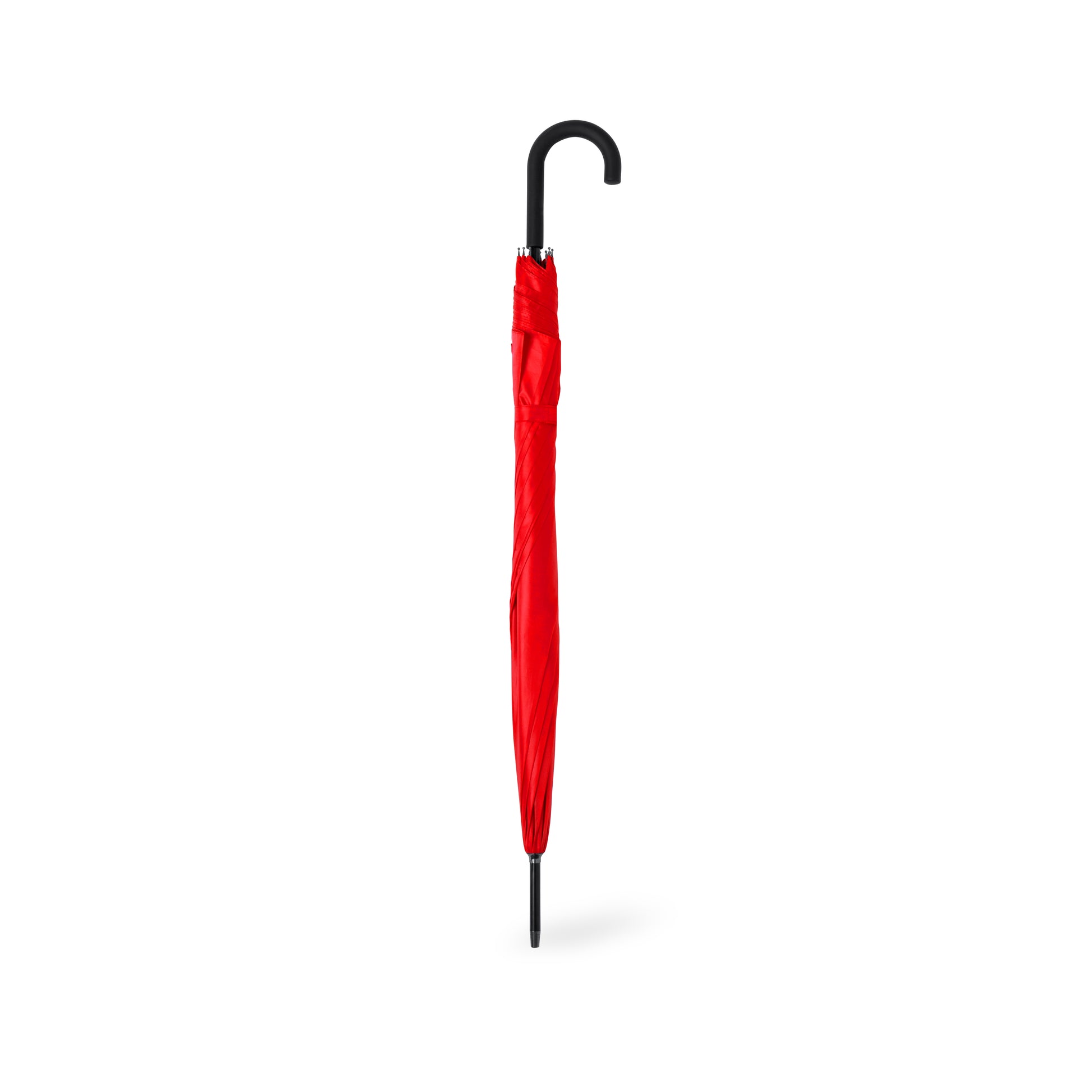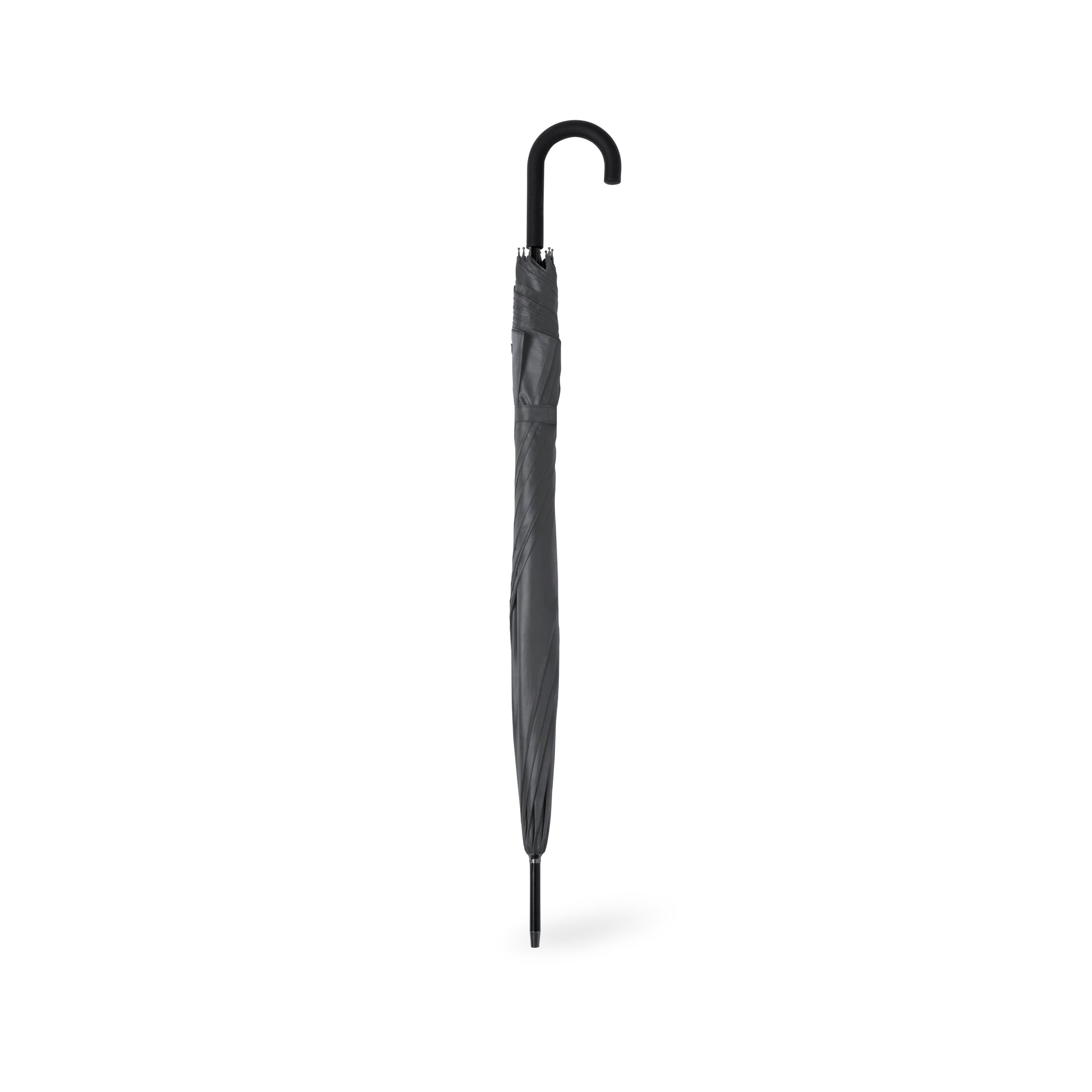 Guarda-chuva de 8 painéis tamanho XL -130 cm diâmetro-, fabricado em resistente material pongee 190T. De abertura automática e com mecanismo antivento. Varetas de fibra de cor preta, com pega curvada e fecho de velcro. Disponível numa extensa gama de cores.