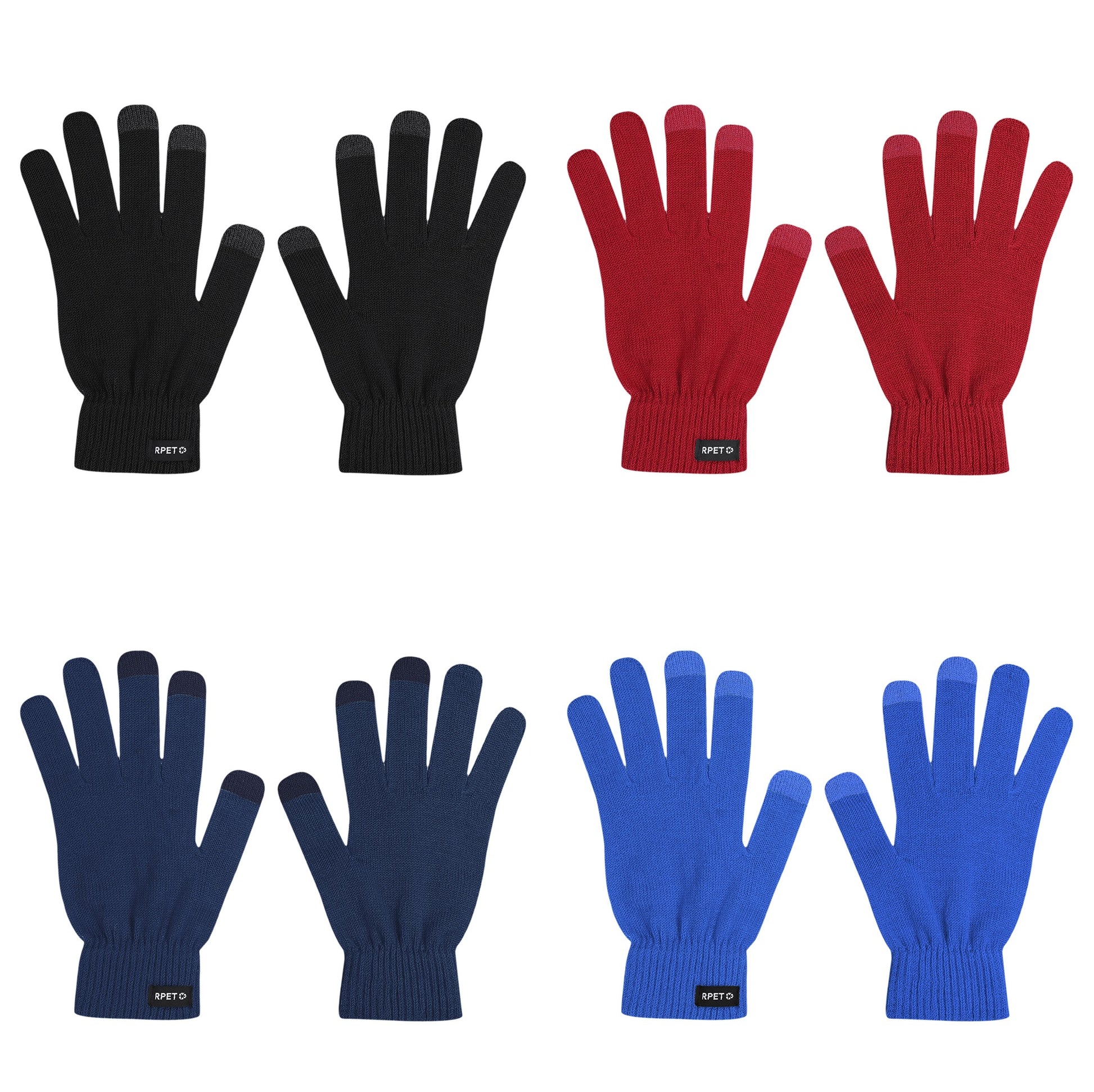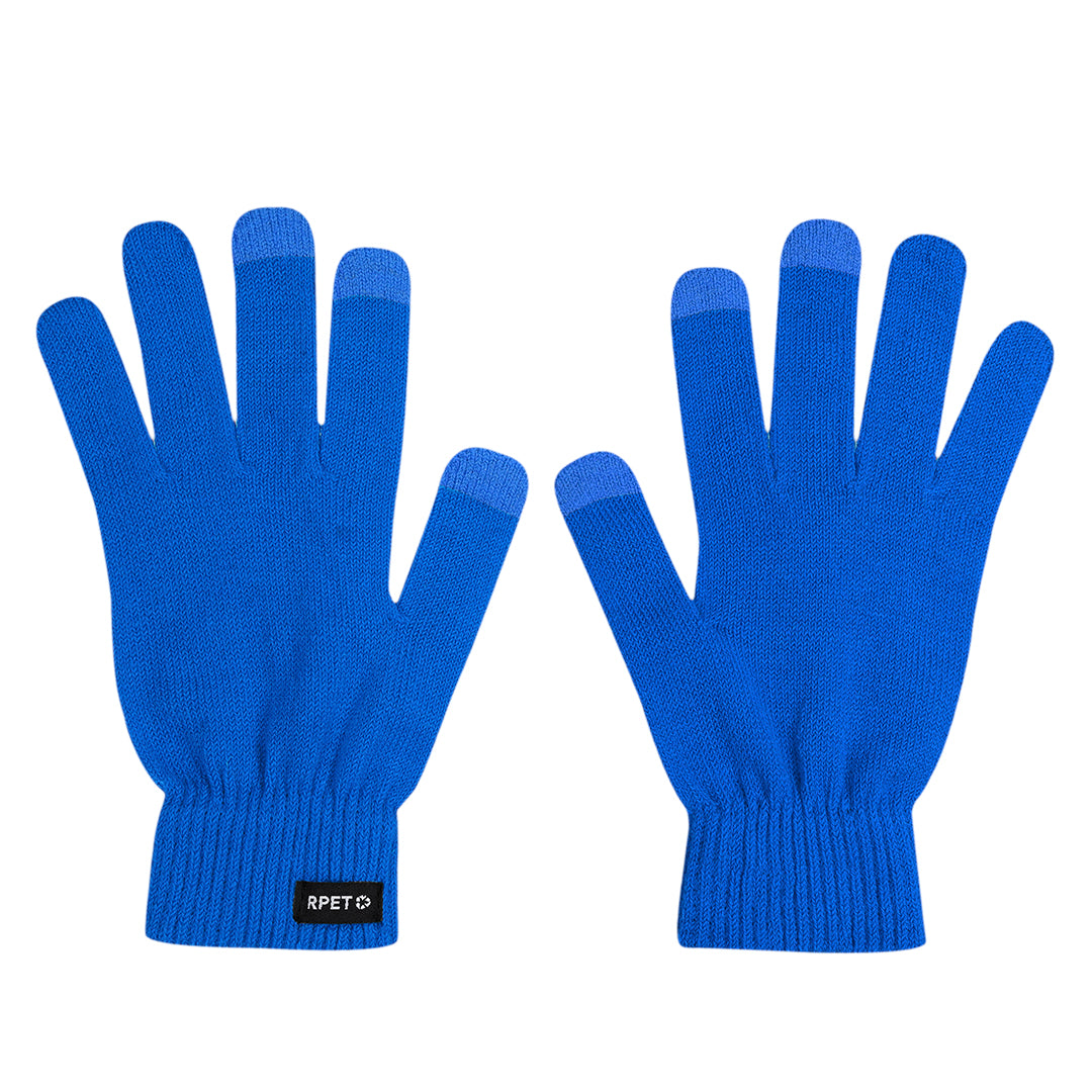 Luvas feitas de tecido de poliéster RPET quente e macio, para dispositivos touchscreen. Com funcionalidade de touchscreen nos dedos médio, indicador e polegar em cor correspondente. Com etiqueta RPET.