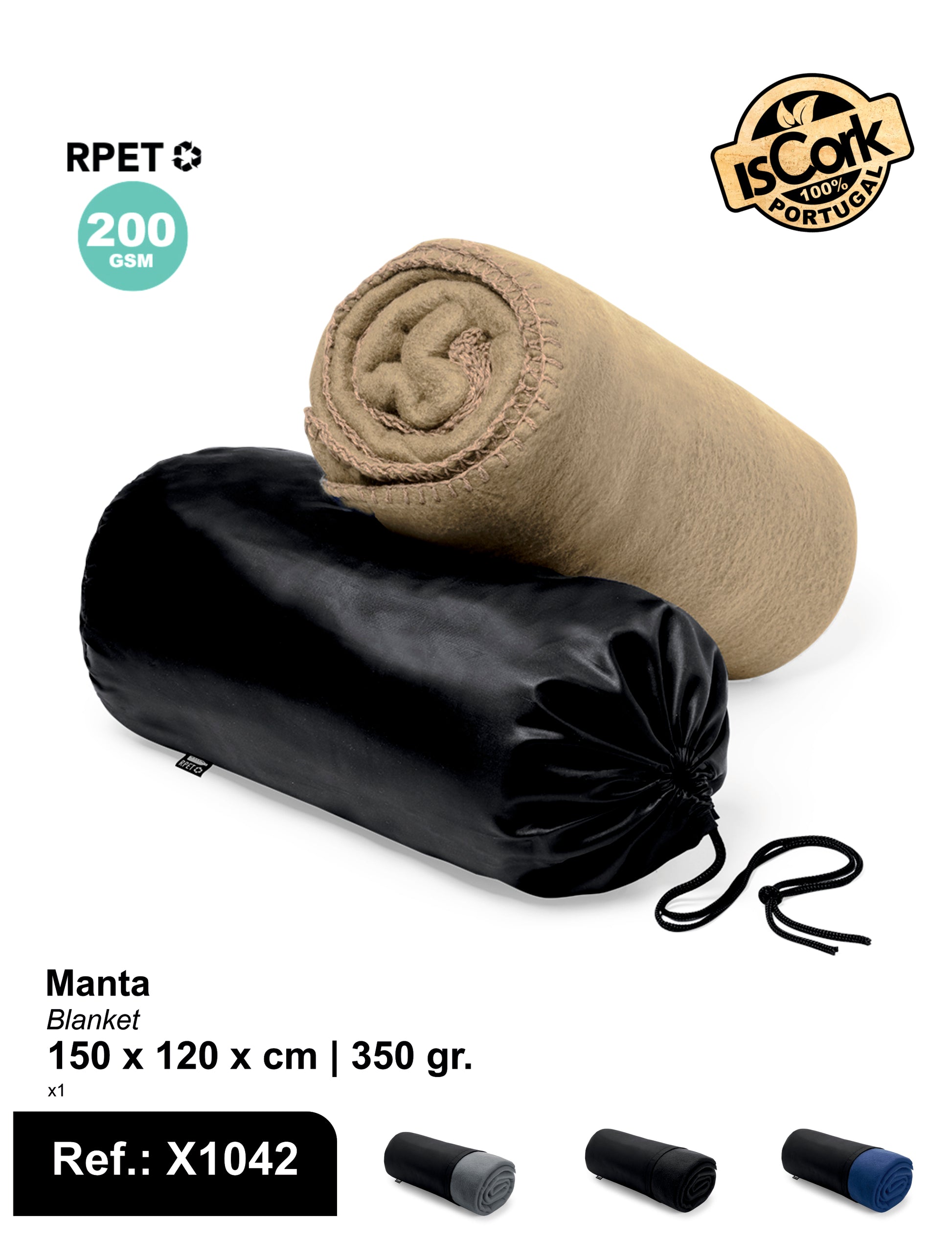 Manta 120x150cm numa variada gama de cores vivas. Em material polar fleece RPET 200g / m2, elaborado com plástico reciclado para assim incentivar a reutilização de resíduos plásticos e contribuir para a sustentabilidade do planeta.